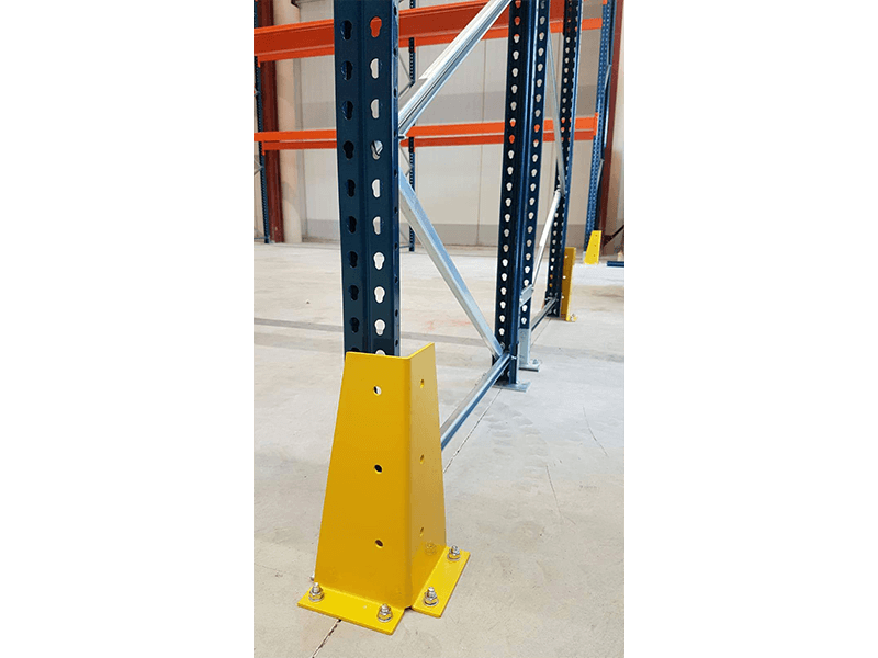 Les sabots de protections en acier protègent les échelles de rayonnage pour la mise en sécurité FEM, INRS ED 71 et SIMA.