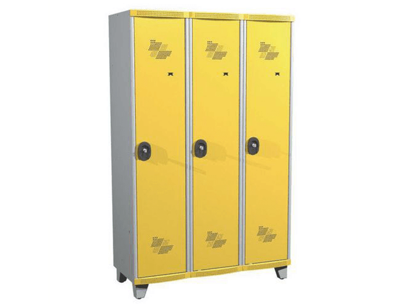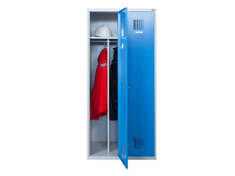 Le vestiaire en industrie salissante (larg. 400 mm) à la différence de celui en industrie propre (larg. 300 mm ) dispose d'une séparation médiane afin de séparer vêtements personnels (propres) et vêtements professionnels (sales). On peut également dans le vestiaire 400 mm y insérer un casque de moto.